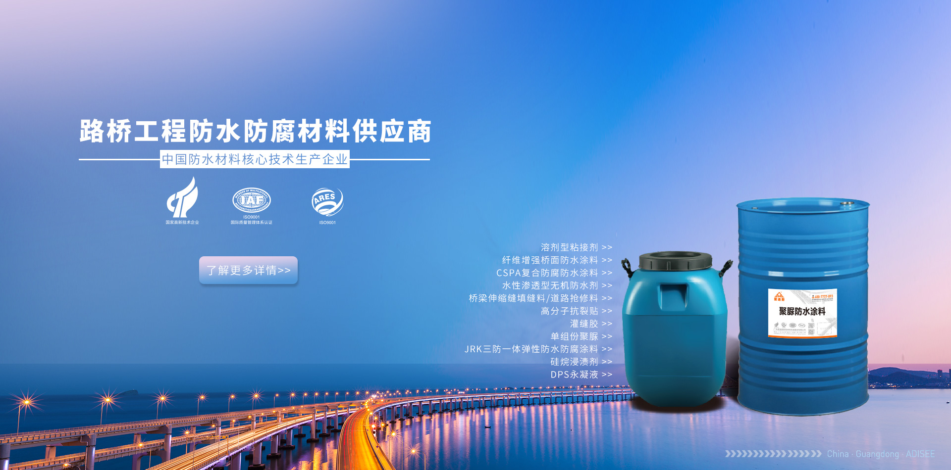 修繕補漏防水系列 廣東愛迪斯新型材料科技有限公司廣州分公司 隔音隔熱系列 路橋及防腐防水系列 家裝工程防水系列 修繕補漏防水系列專業(yè)承接路橋防水防腐工程施工及防水材料銷售,路橋防水工程遍布全國各地,多年的技術經驗積累了一整套橋面防水病害處理方案,專業(yè)的路橋防水技術,配套路橋防水施工設備,圓滿完成路橋防水施工任務,用戶滿意度評價高,處橋梁防水行業(yè)技術領先水...